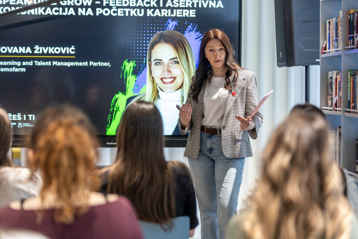 “Speak up & Grow – Feedback i asertivna komunikacija na početku karijere“, koju je vodila Jovana Živković, (C&P Hemofarm), stipendisti su imali priliku da kroz realne situacije vežbaju komunikacione stilove i razumeju značaj otvorene, „speak up“ kulture.